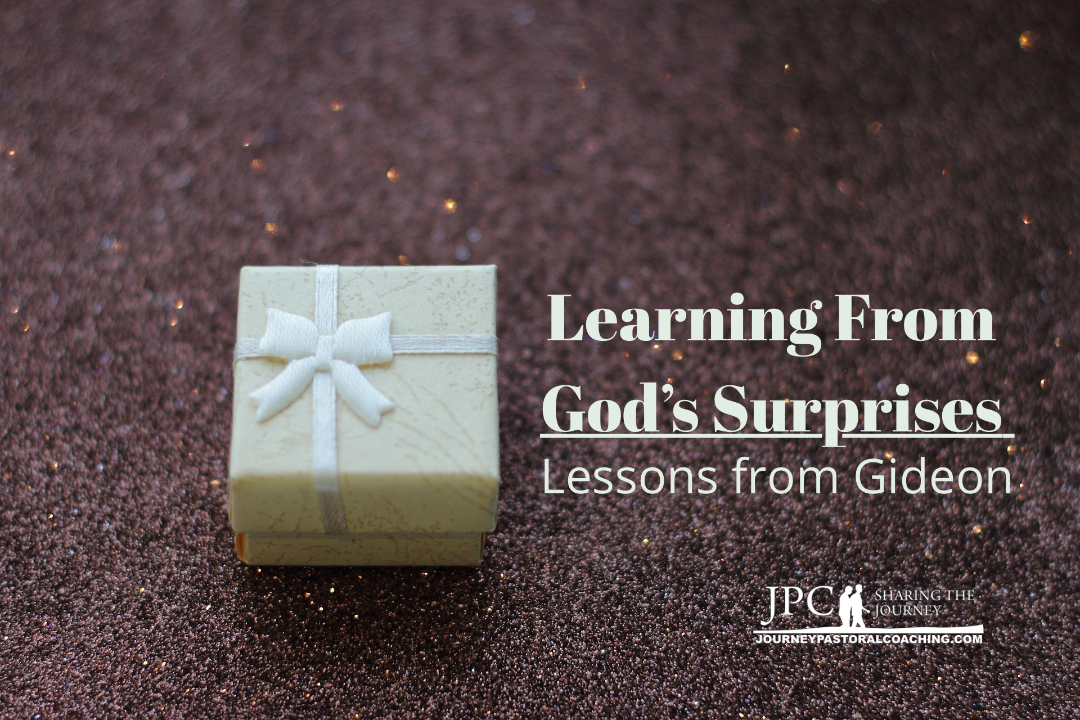 Gideon’s world was broken. His nation, home, family, and life were shattered into pieces without hope of healing. He had nothing but the promises of God. But God’s promises proved to be more than enough, even in Gideon’s crushed world. They are more than enough in yours and mine. God’s Word is filled with exceedingly great and precious promises – promises of provision, protection, wisdom, healing, love, joy, peace, life abundant and eternal. He continually uses surprises to lift those promises-in-ink from the pages of Scripture and breathe them into our souls. Remember the old hymn, “Count Your Blessings?” Go ahead; start counting, and be prepare to be surprised again.